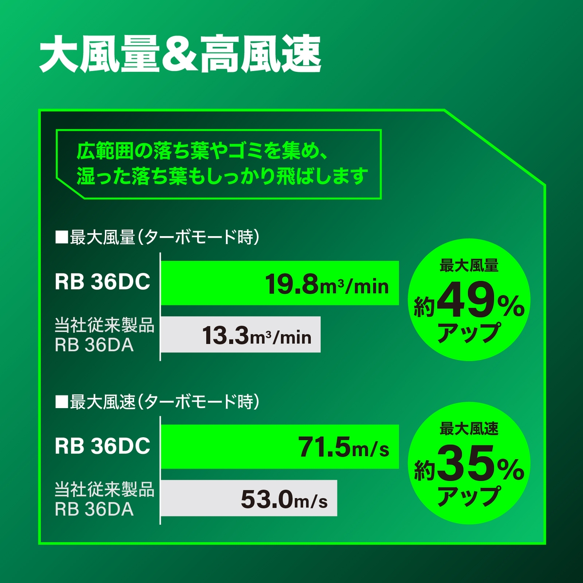◇当社従来製品 RB36DAと比較し最大風速 約35%アップ
