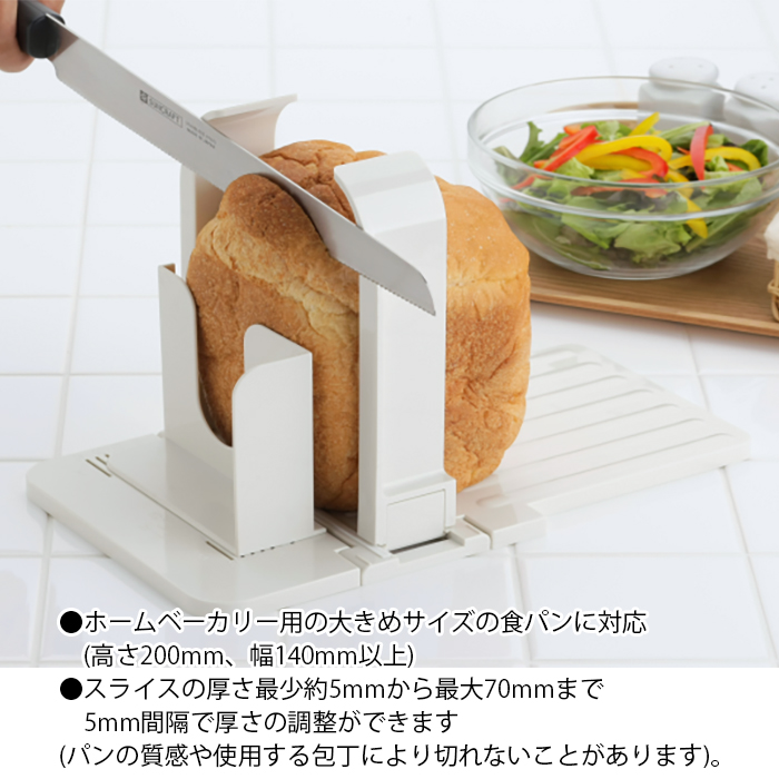 ●スライスの厚さ最少約5mmから最大70mmまで5mm間隔で厚さの調整ができます(パンの質感や使用する包丁により切れないことがあります)。